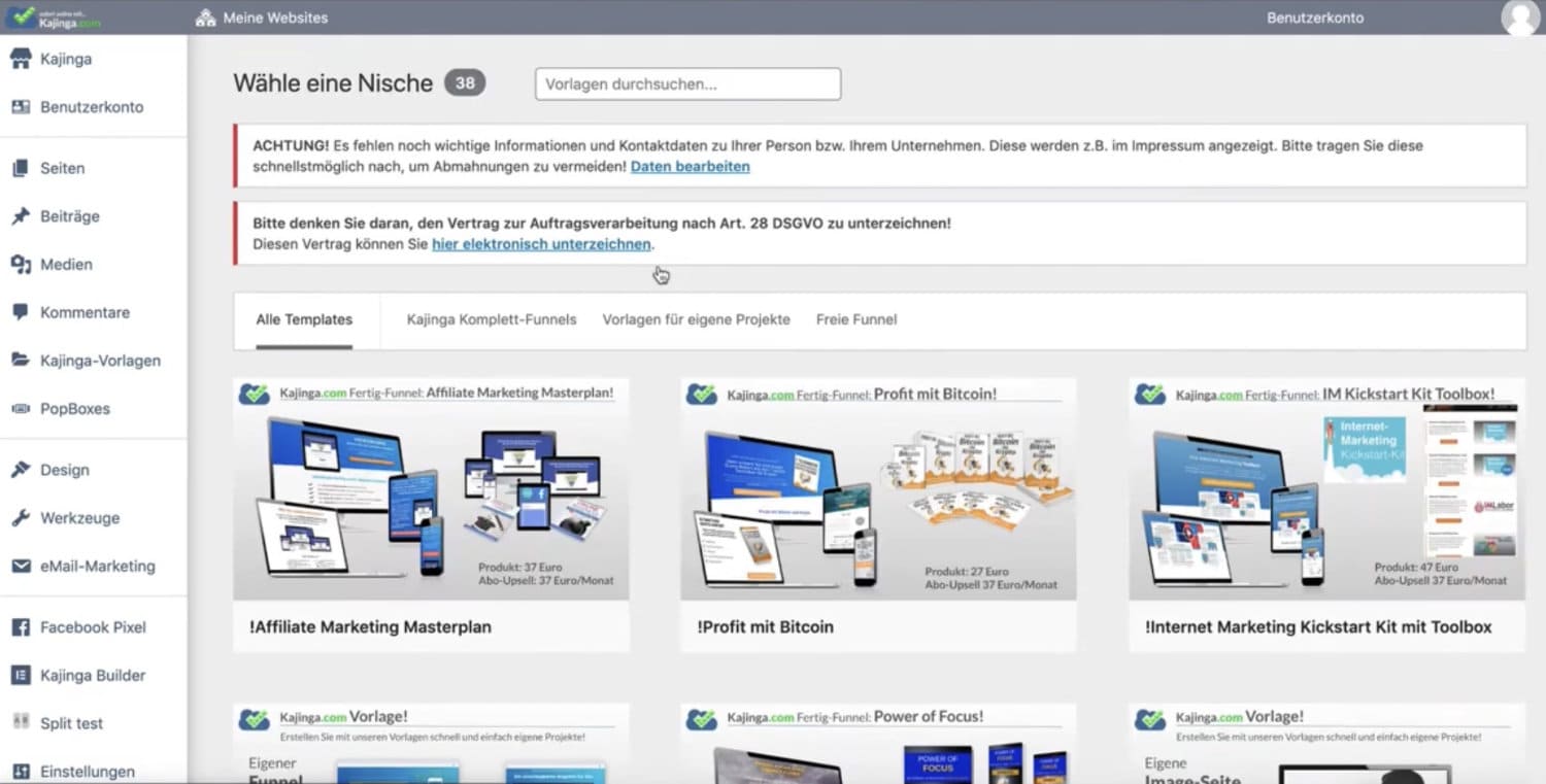 Kajinga ist eine All-in-One-Marketing-Software, die (fast) alles abdeckt, was Du für einen erfolgreichen Online-Auftritt brauchst: